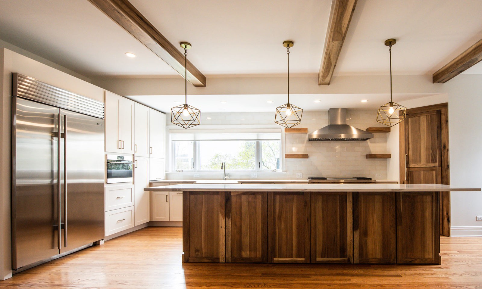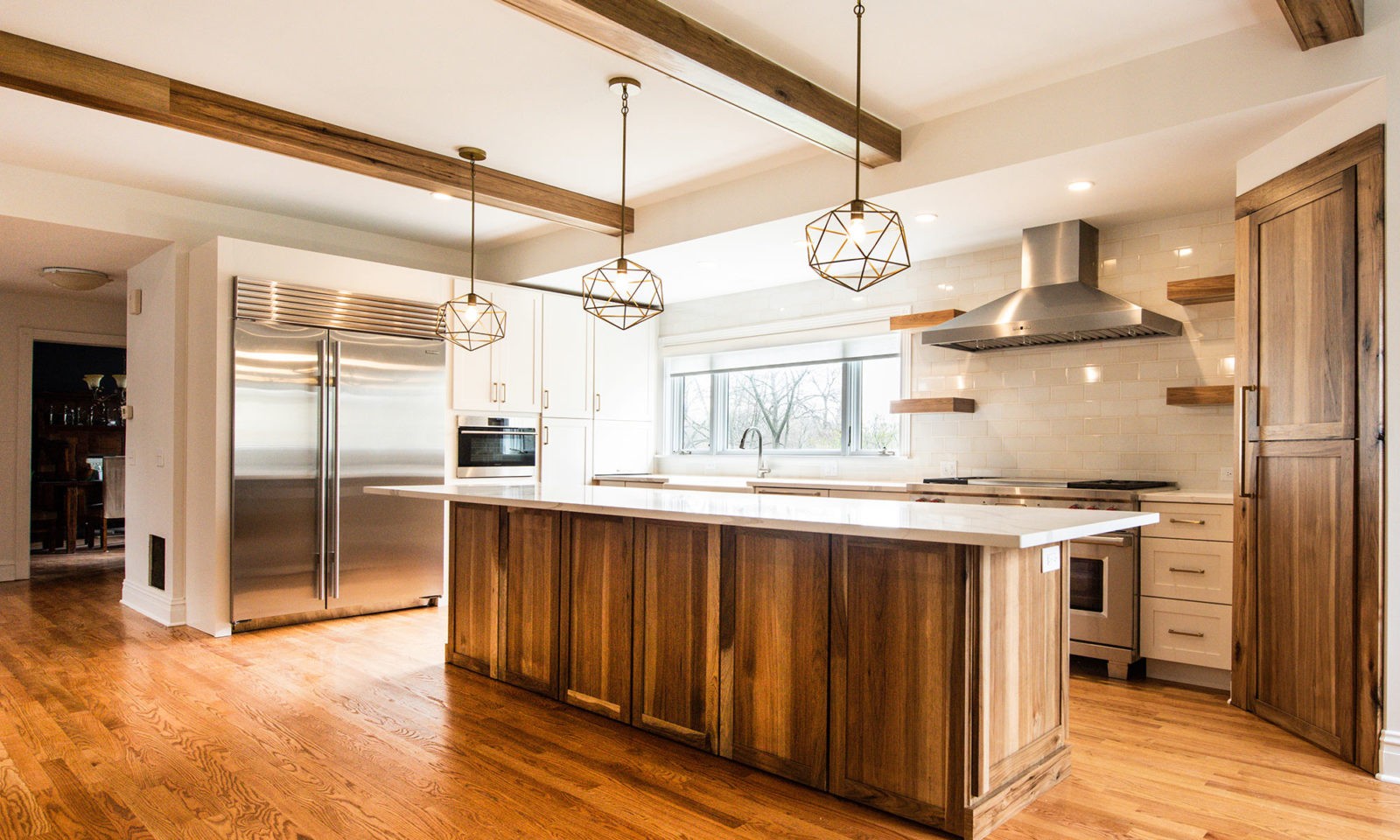 The result was a family-focused floor plan with dynamic and inspiring spaces. Touches of hickory throughout bring a softness to the grand Victorian spaces, contrasting the clean and modern design lines.